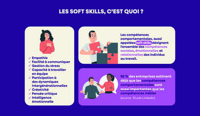Les soft skills, ou compétences comportementales, désignent l'ensemble des compétences sociales, émotionnelles et relationnelles qui permettent à un individu de mieux s'adapter à un environnement donné.